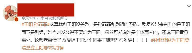 孙菲菲留言说王阳当时不在现场,希望大家不要为难他。